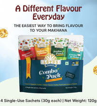 Flavour Assortment: Includes Cream & Onion, Pudina Punch, Spanish Tomato, and Italian Cheese makhana seasonings for a wide range of taste experiences.